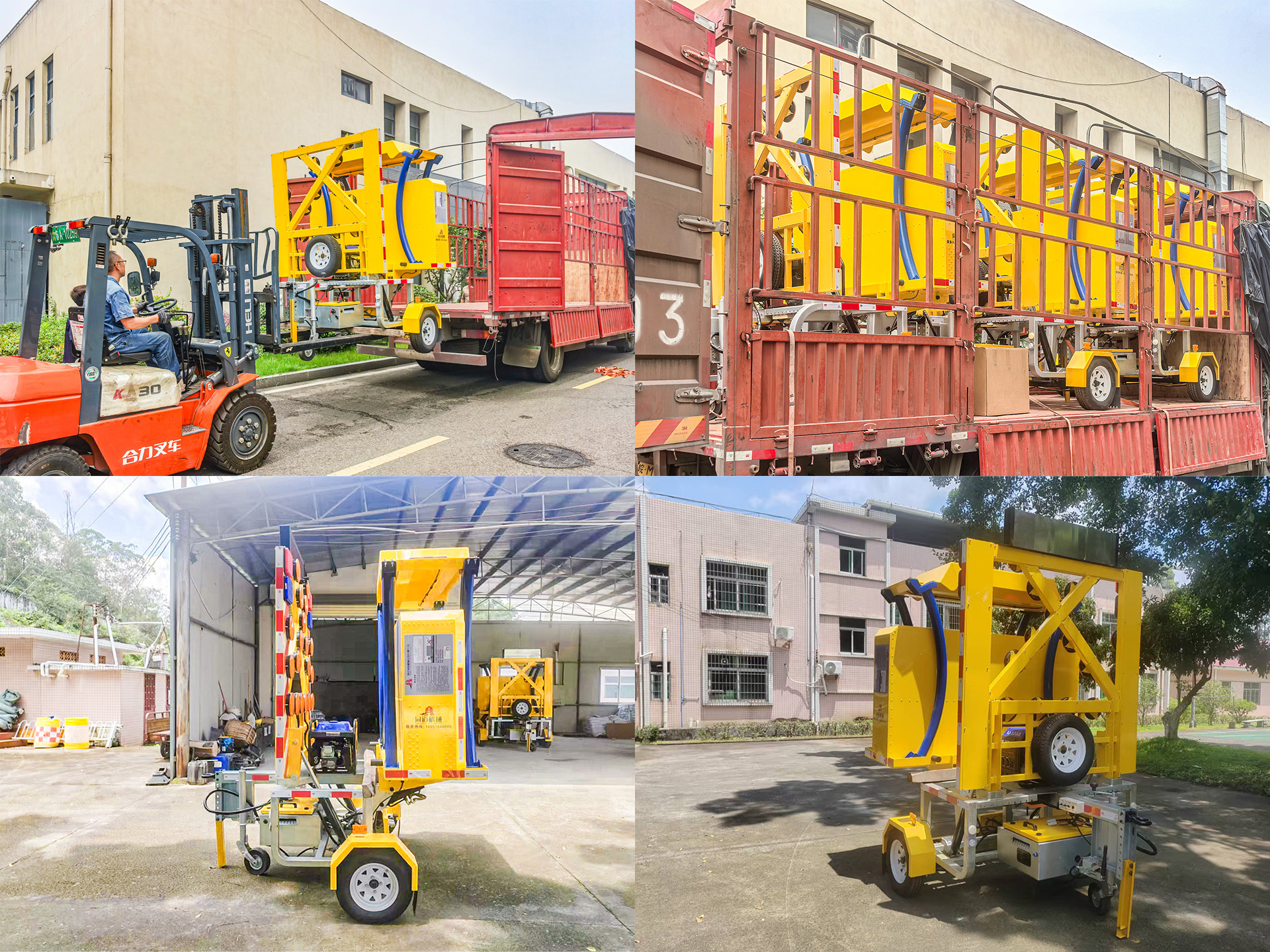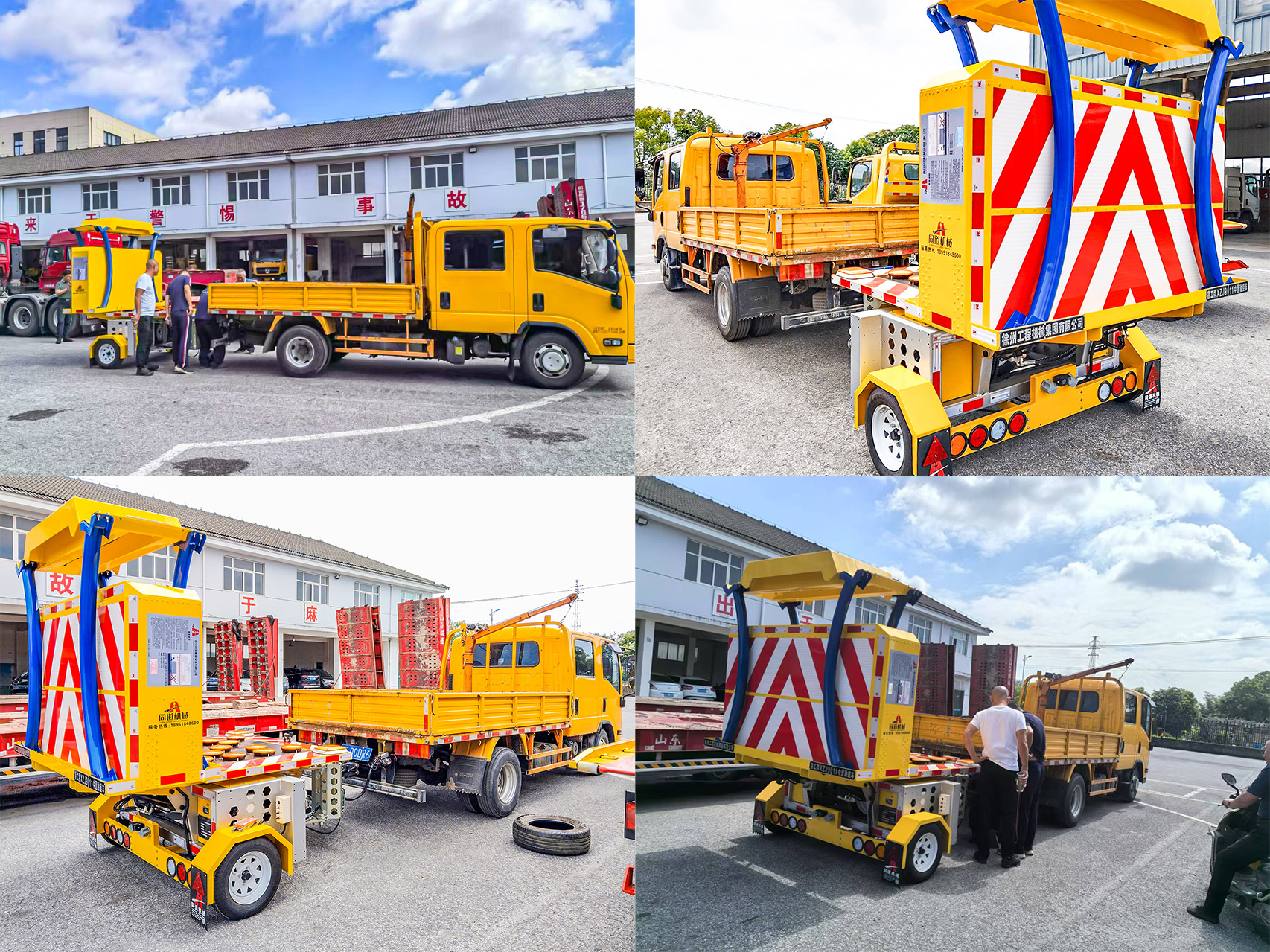 2025年6月,南京同道机械设备有限公司的70K中置轴防撞挂车在广东、江苏三地成功交付,为当地道路施工与应急救援提供高标准安全防护。此次交付的车辆中,广东地区客户加装LED显示屏、发电机及警用爆闪灯,进一步强化了警示与作业效能;而江苏地区则特别选装新款版本,拖挂中置轴部分也具备缓冲装置的双重防撞拖挂溃缩系统,为道路安全再添一道坚实屏障。拖挂式防撞缓冲车可以单独上牌,可拖挂在任何工程车辆后面,方便实用!它比整车底盘式防撞车优势,没有发动机,不用购买任何保险,基本零费用保养,减轻养护单位的日常使用维护成本!